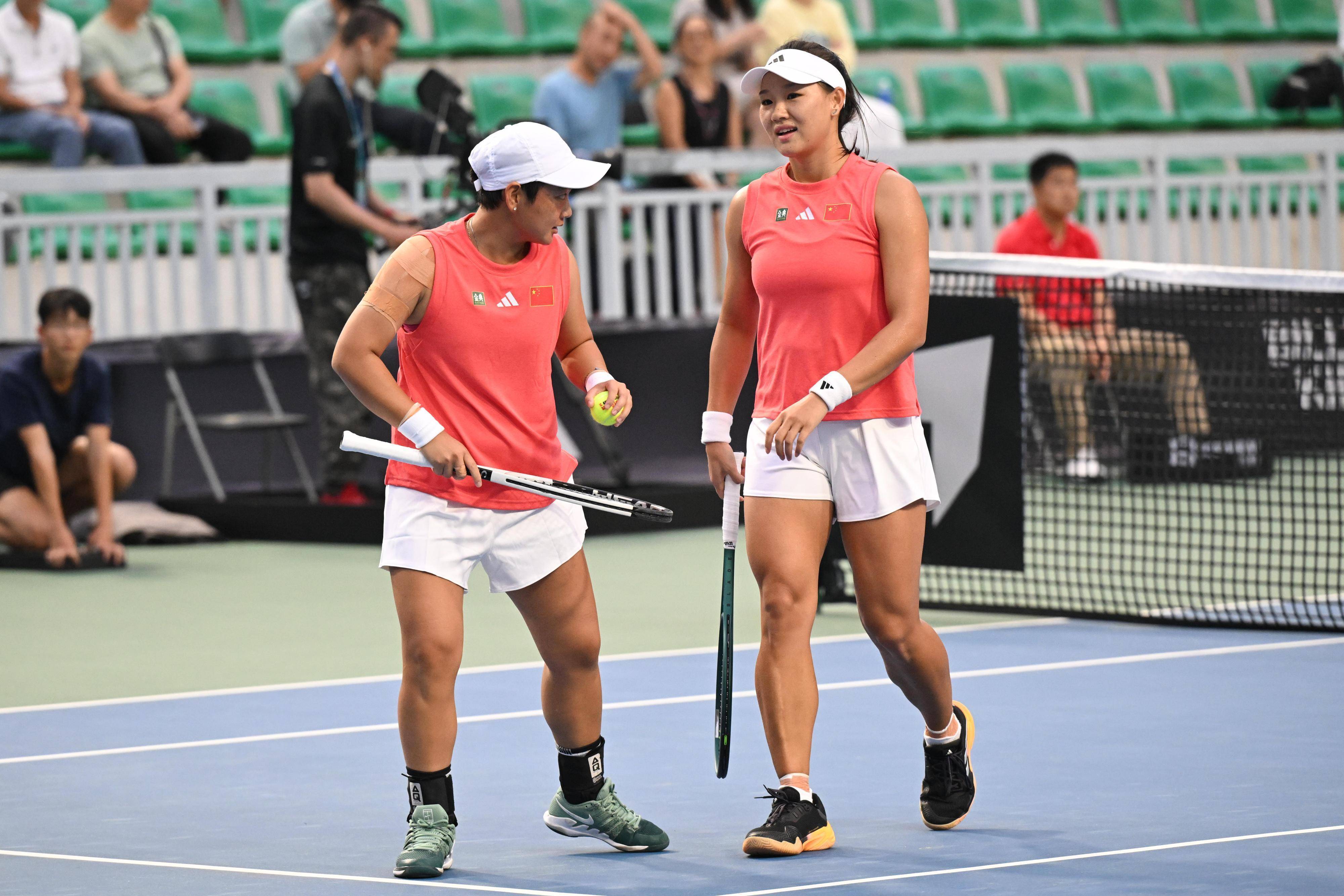 在关键的双打决胜战中,中国队派出郭涵煜/蒋欣玗,比利时队再次更换上场名单,由今日单打比赛获胜的阿娜·范德温克尔与索菲亚·克斯特拉斯搭档出战。郭涵煜/蒋欣玗顶住压力,以7比6(3)、6比3获胜,为中国队锁定胜局。