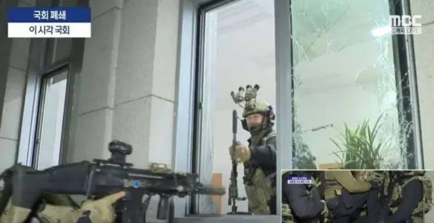从这次动用的装备和部队来看,戒严行动还是经过精心准备的,特种部队具备快速反应能力,能够处置各种突发情况,因此特种部队是国会抓捕任务的主力。根据韩媒报道, 当地时间4日0时30分左右,戒严部队打碎了国会大楼窗户,强行进入国会。共同民主党一名发言人称,国会内部监控录像显示,戒严部队一度闯入国会办公室,试图逮捕包括共同民主党党首李在明、国民力量党党首韩东勋和国会议长禹元植等人。