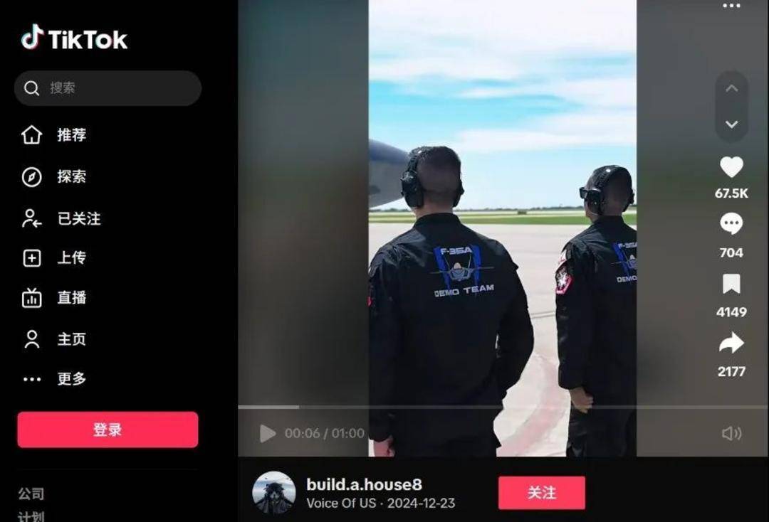 网传第四张飞行员图片出自一段视频,通过关键帧反搜,可以找到这个视频来自TikTok平台美国军事内容博主@build.a.house8于2024年12月发布的内容。在完整视频中,可以看到地勤人员背后“F-35 A DEMO TEAM”字样。“F-35 A DEMO TEAM”(全称F-35A闪电II表演队),是隶属于美国空军第388战斗机联队的飞行表演队。