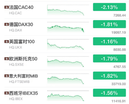 12日晚间,值得关注的是欧洲的股市,集体暴跌。其中法国股指跌超2%,德国股指跌1.8%,欧洲斯托克50指数跌近2%。